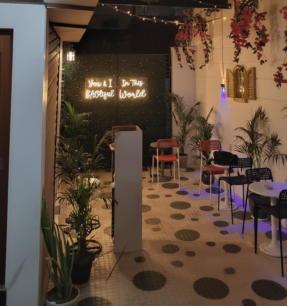 For this Compact Cafe Interior project, the client’s vision was to create a space that feels cool, aesthetic, and charming — a place where people would not just enjoy their coffee but also the ambiance. The café had two sections — an AC indoor zone and an open-air seating area. With limited space and a tight budget, the challenge was to achieve a vibrant, welcoming look that could attract customers and make the café stand out, all while ensuring cost-effectiveness.