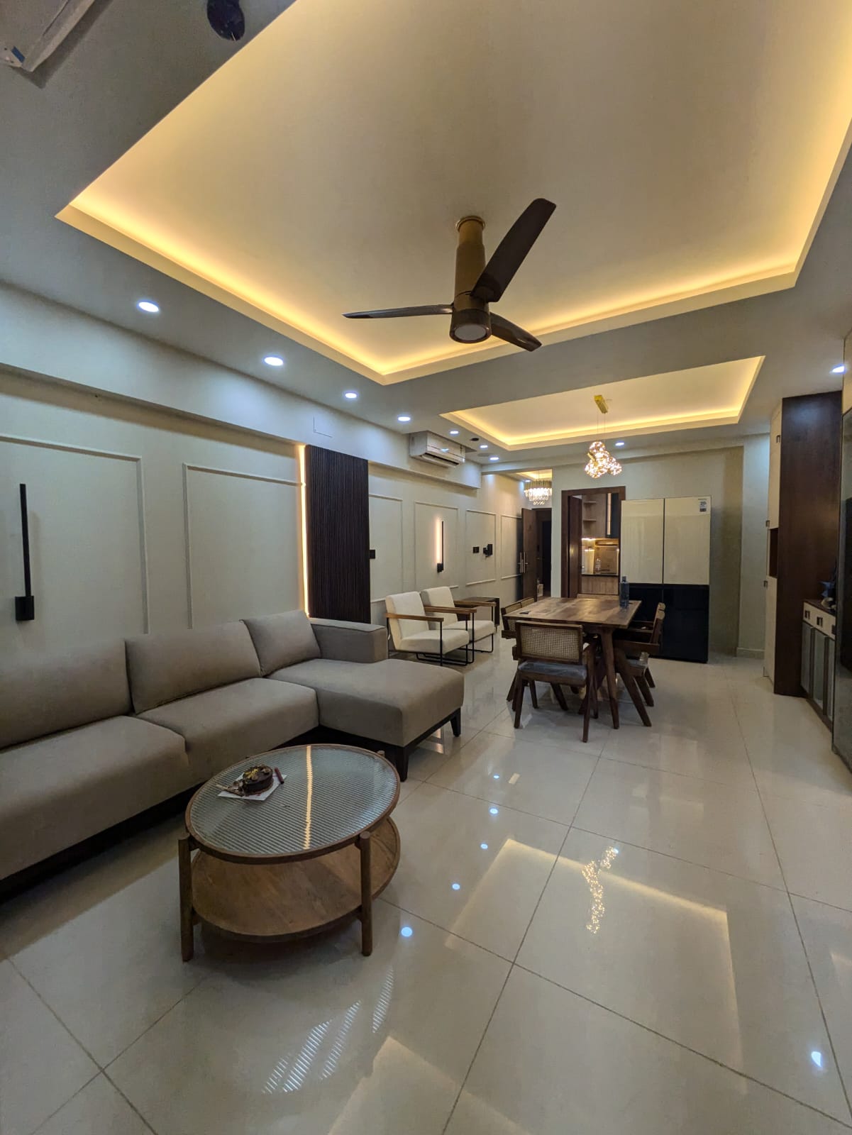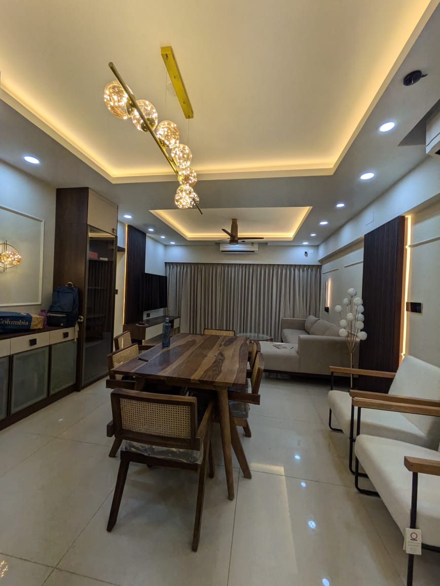 We focused on minimalist design with elegant highlights. Clean lines, subtle textures, and carefully chosen finishes created a refined look. The living space was styled with neutral tones, modern furniture, and accent lighting to bring out warmth and sophistication. For the dining area, we used sleek furniture and minimal décor elements to maintain openness while adding a touch of luxury. Small but impactful features — like lighting accents, curated wall finishes, and refined furniture pieces—elevated the overall aesthetic.
